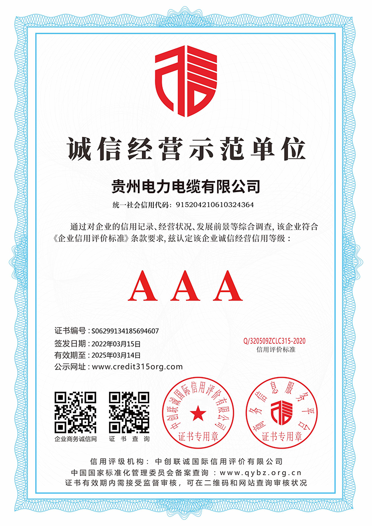 AAA級重合同守信用企業